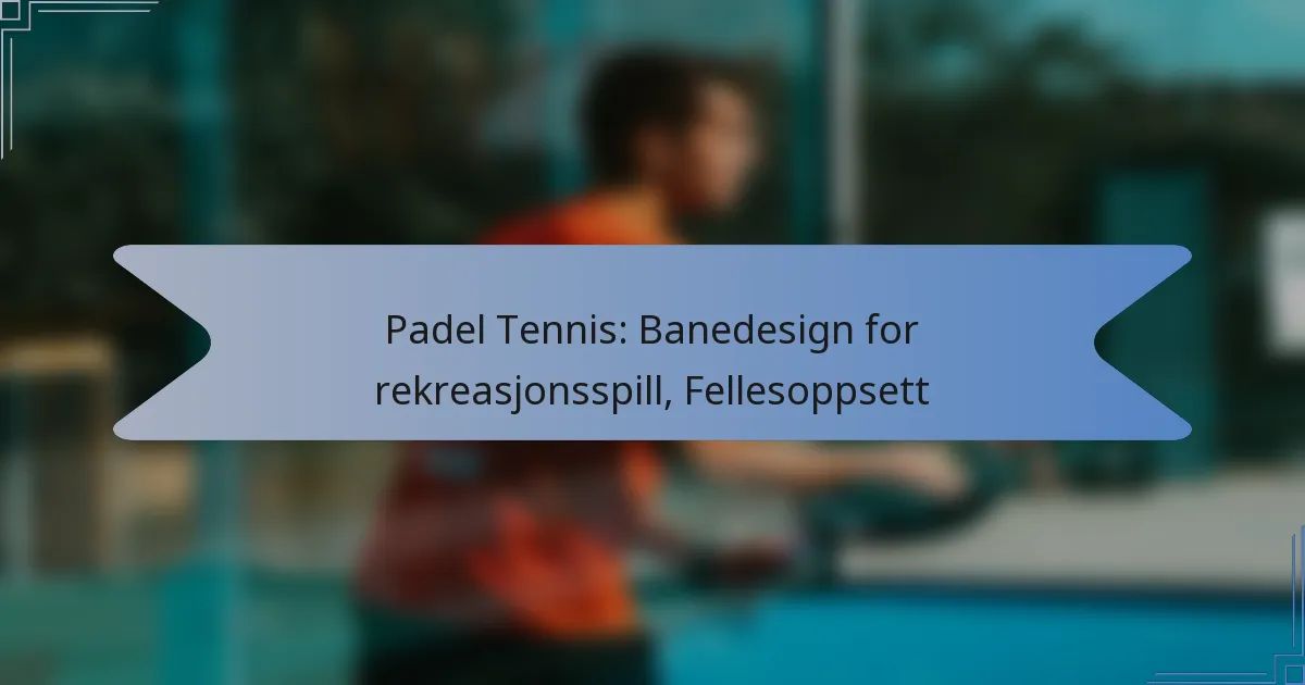 Padel Tennis: Banedesign for rekreasjonsspill, Fellesoppsett